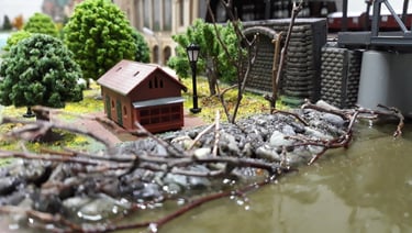 Representative model made for a City Council in the North of the country. Measuring 3x2m, it represents the conversion of water energy into electrical energy by means of a dam and its distribution to neighboring towns. The dam, posts and villages were created in 3D, the rest was molded and decorated by hand.