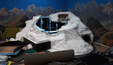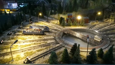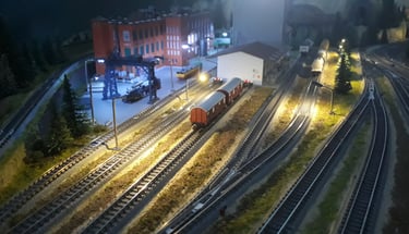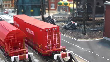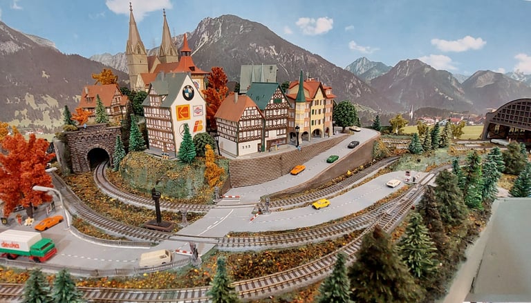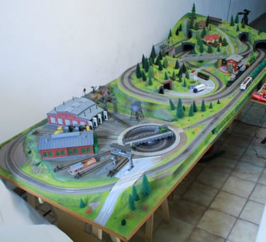 HO model built with the addition of 2 Noch molds, later decorated and the Faller Car System installed. Controlled by Roco's digital system.