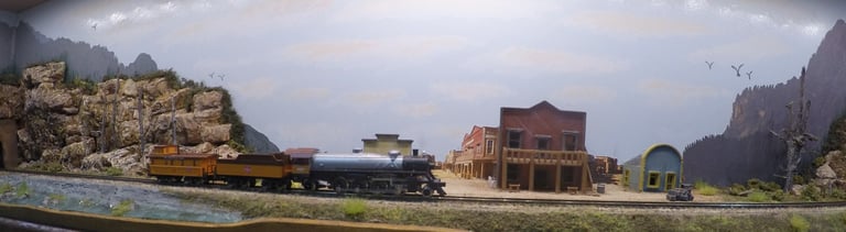 Z scale model measuring 1mx30cm on display recreating an environment from the American Wild West.