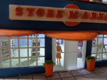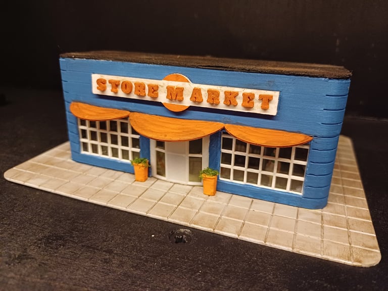 Loja para adicionar à maqueta de ambiente americano, totalmente impressa em 3D, montada, decorada e iluminada.