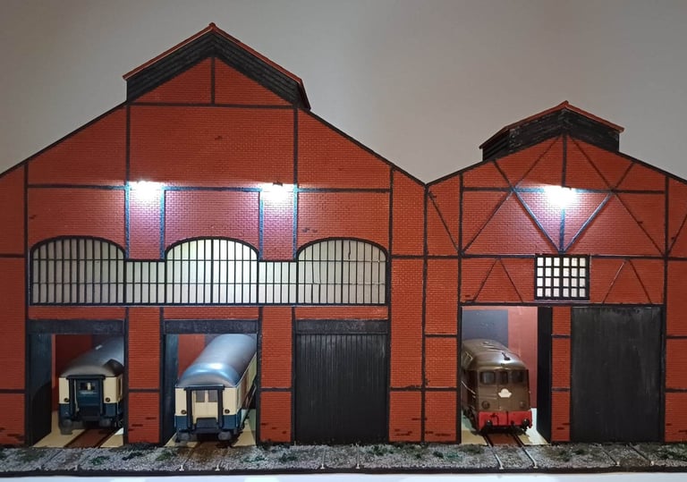 Built with laser cutting this building is delivered assembled, painted, decorated and illuminated. Dimensions: 38cm wide, 10cm deep and 24cm high. (Trains not included) Ref. FA-002 Price: 150 eur