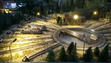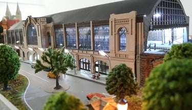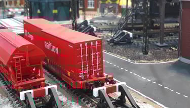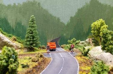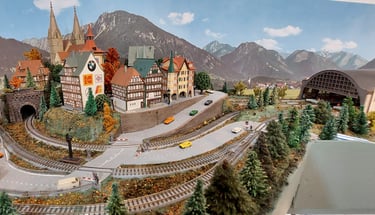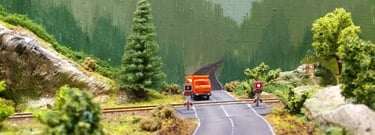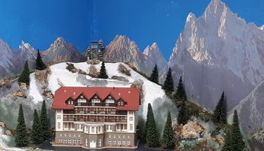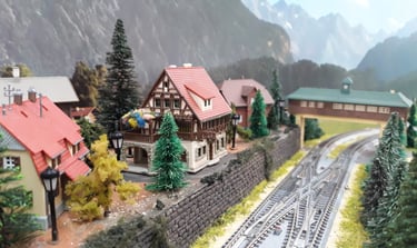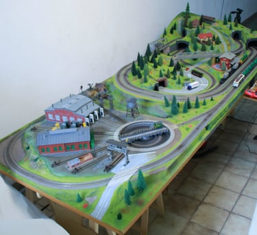 HO model built with the addition of 2 Noch molds, later decorated and the Faller Car System installed. Controlled by Roco's digital system.