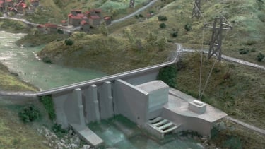 Representative model made for a City Council in the North of the country. Measuring 3x2m, it represents the conversion of water energy into electrical energy by means of a dam and its distribution to neighboring towns. The dam, posts and villages were created in 3D, the rest was molded and decorated by hand.