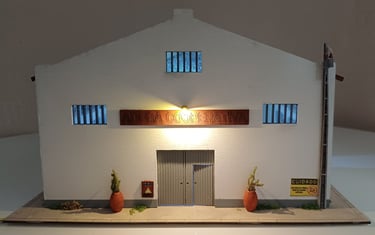 Its construction involves laser cutting, 3D printing, assembly, painting, decoration and lighting with LEDs (12V).