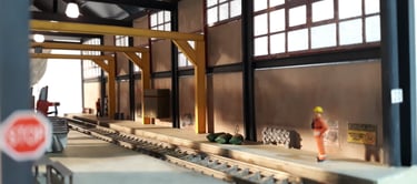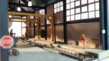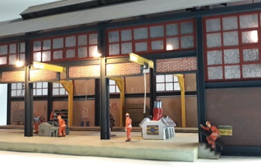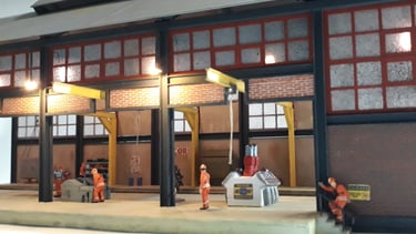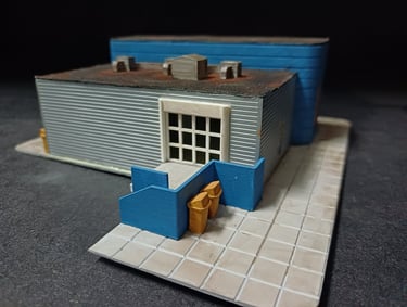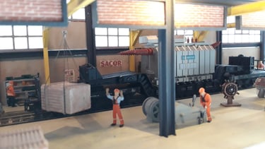 Totalmente construido de raiz este edifício é uma réplica do existente em Lisboa na zona da Rocha Conde Óbidos mas com a adição de acesso por via férrea de modo à perfeita integração na futura maqueta. Os detalhes apresentados, alguns de impressão 3D elevam o modelo a outro patamar com uma apresentação muito realística do que por lá se faz. Utilizado o material da Redutex, Evergreen, impressão 3D e acessórios vários sobras de outras construções. Iluminado no interior e exterior.