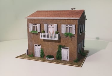 O modelo Casa de Xisto foi criado de raiz para decoração da maqueta e podemos encontrá-las na região da Lousã.