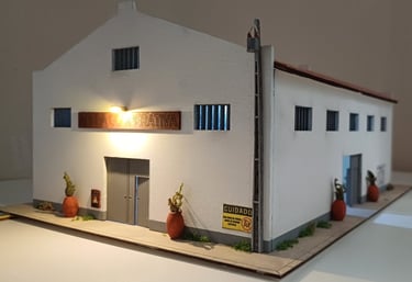 Na sua construção é aplicado o corte a laser, impressão 3D, montado, pintado, decorado e iluminado com led's (12V).