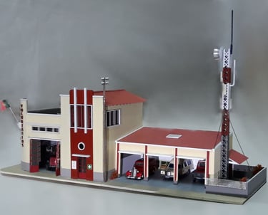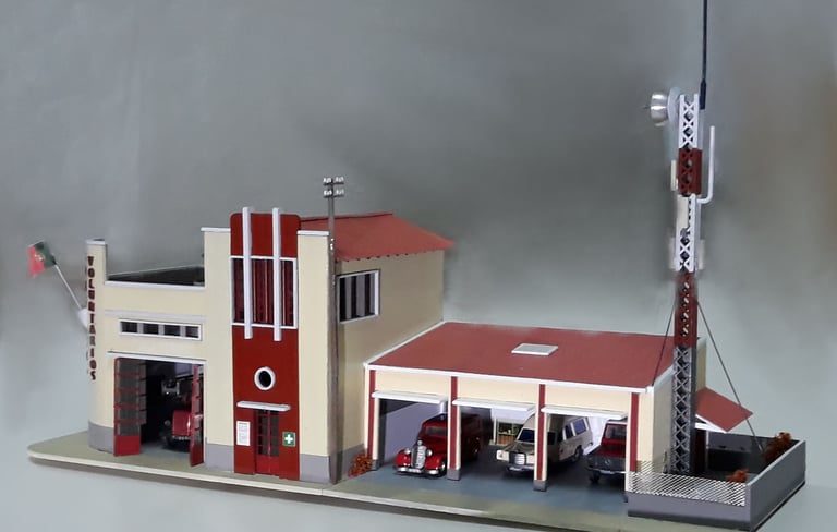 A este excelente kit da Modelismo Artesanal foi acrescentado um anexo para o parqueamento de mais 3 viaturas, o poste de comunicações e um espaço externo murado com telheiro.