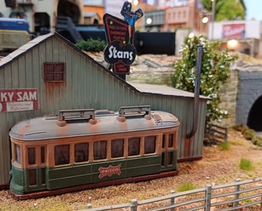 Utilizando um modelo de elétrico da cidade de Lisboa fez-se a a transformação de acordo com muitos exemplos de restaurantes que encontramos nas estradas do continente americano.