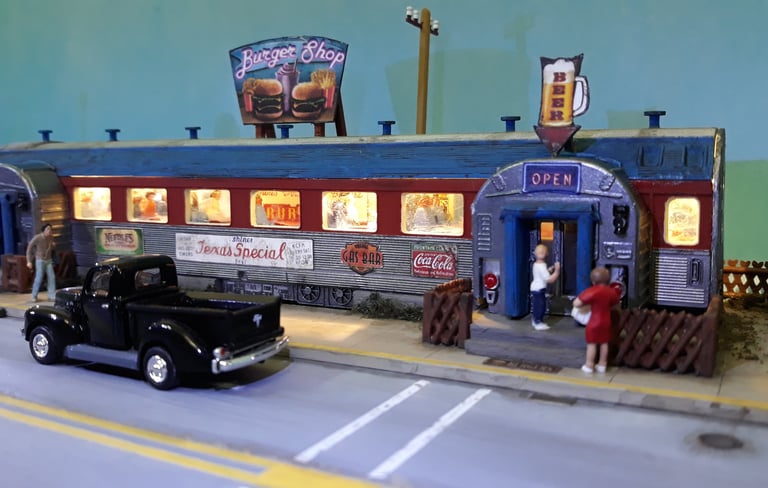 Com base numa carruagem antiga da marca Lima fez-se a transformação de acordo com muitos restaurantes de estrada que encontramos no continente americano. Decorado e iluminado quer no interior quer no exterior.